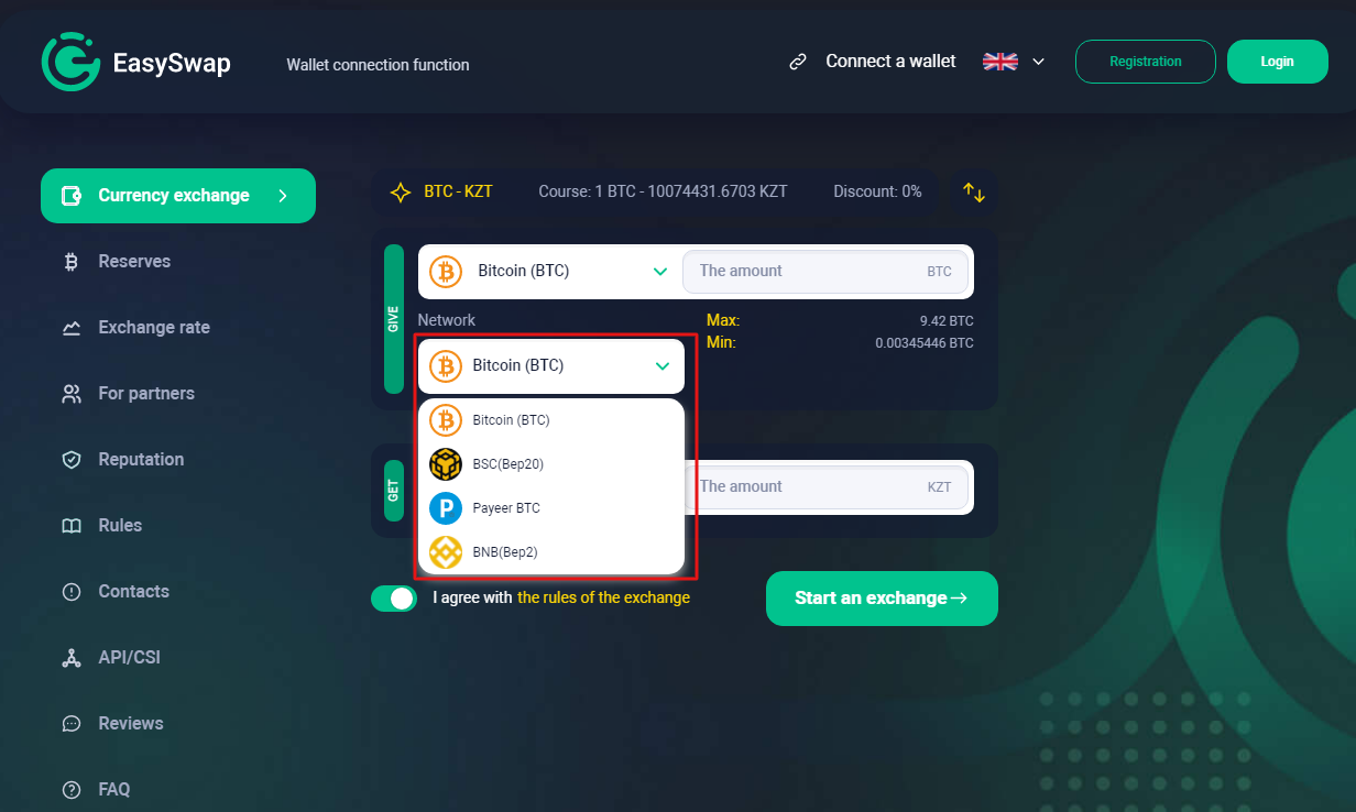 Click "Start exchange", which will mean your agreement with the exchange rules. Please familiarize yourself with them in advance;